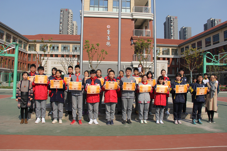随后,进行了伯乐中学4月份颁奖仪式,对近期学生们参与的各项校内外活动获奖情况进行集中表彰。